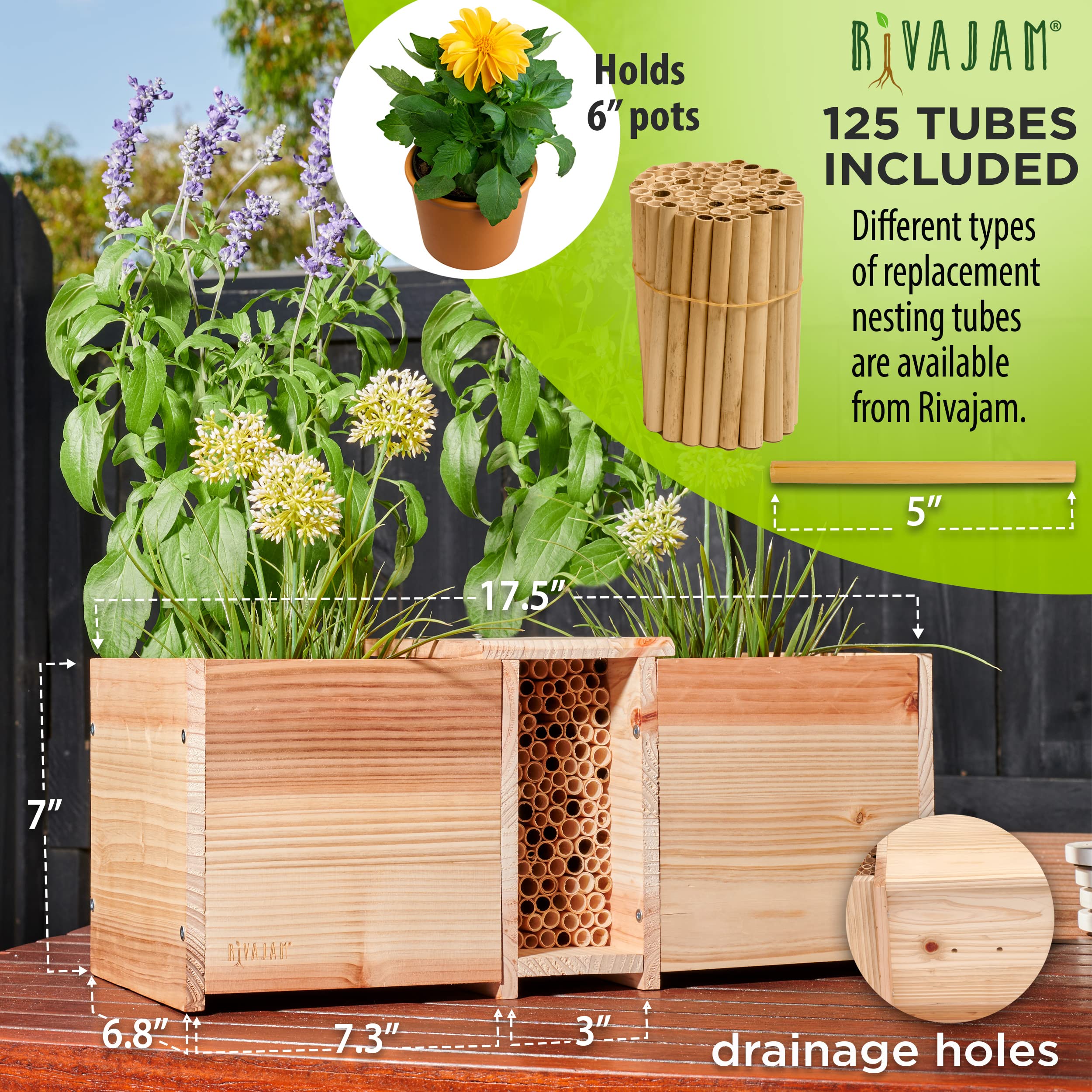 Amazon Com Rivajam Diy Mason Bee House Wood Planter Box Kit Mason Bee Tubes Phragmite Bee Reeds Pollinator House Wooden Planter Box Combo Leafcutter Solitary Bee Houses For